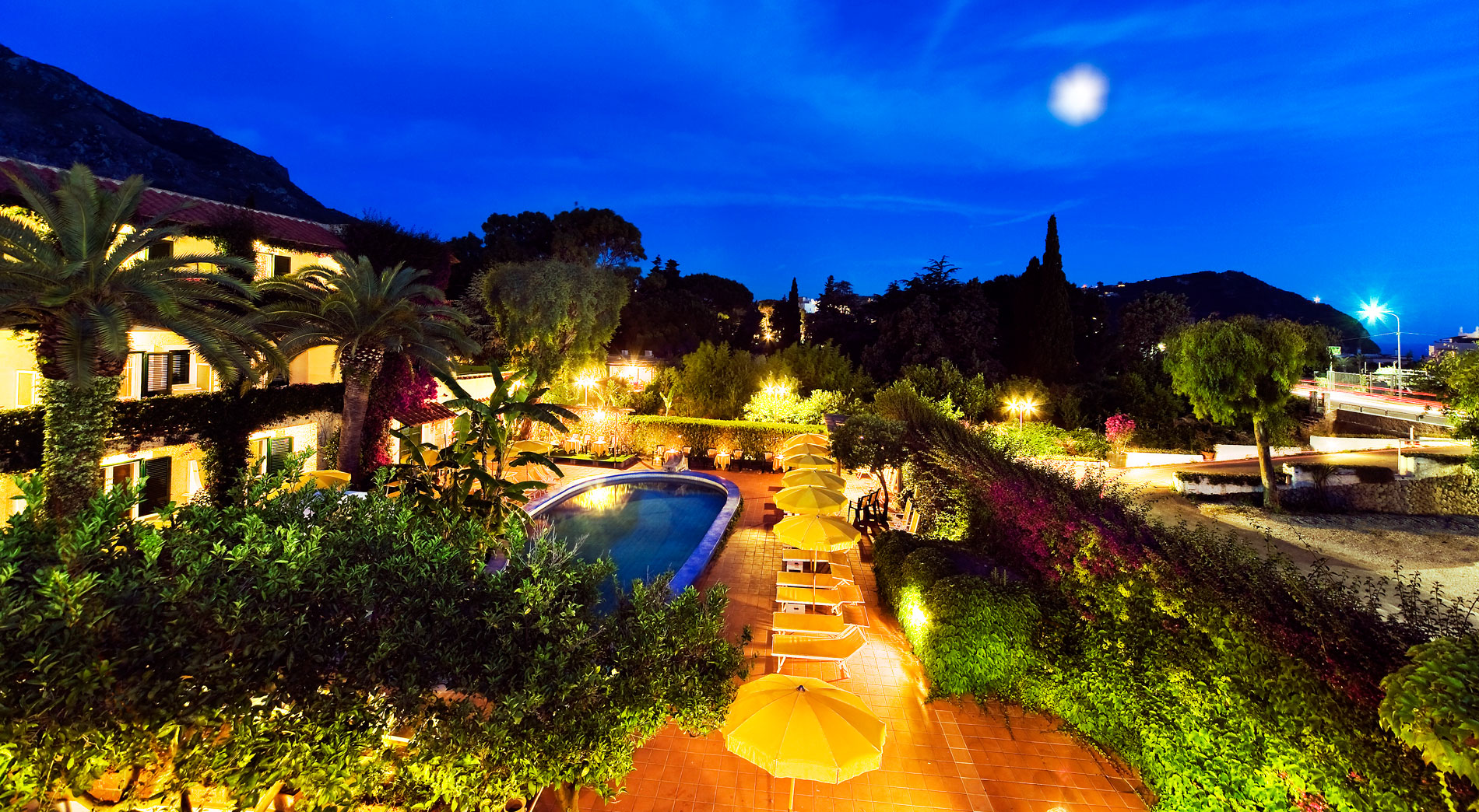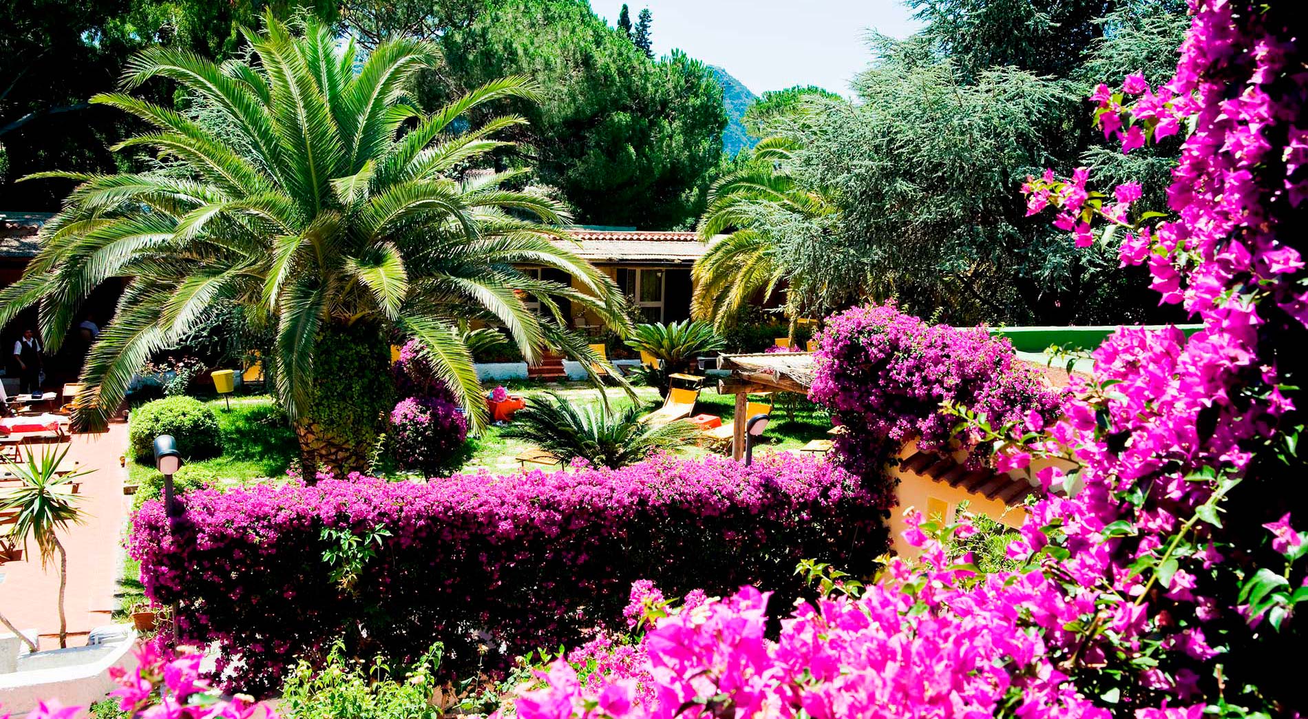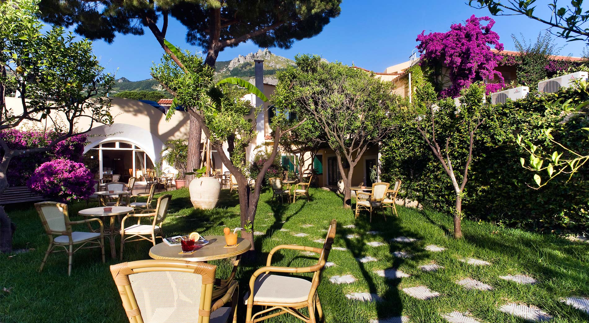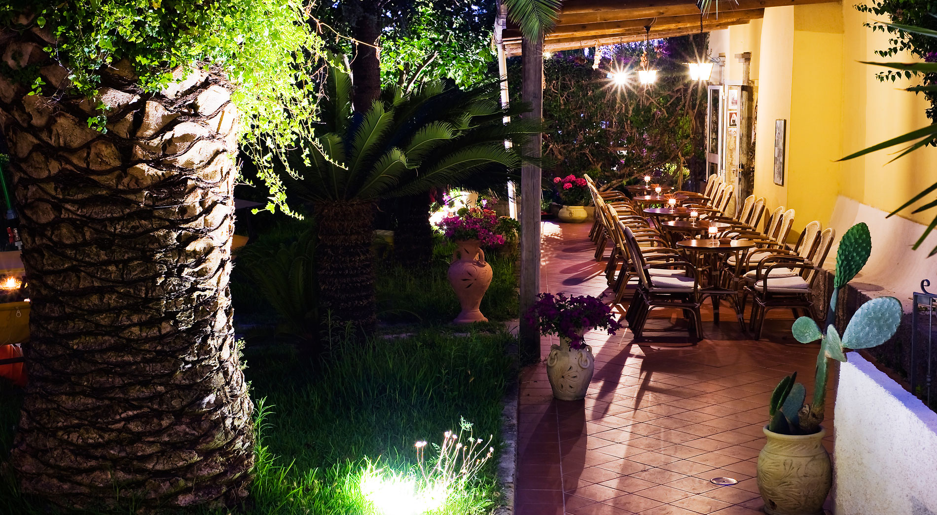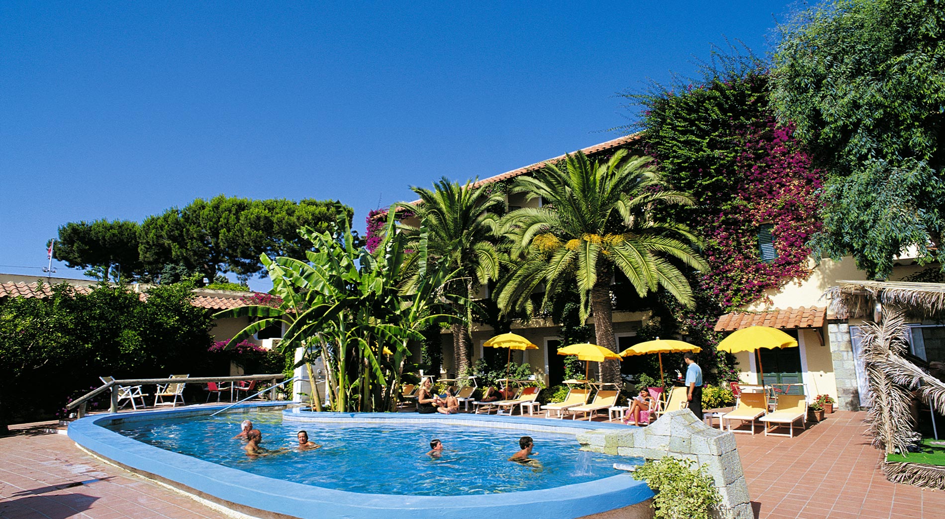 Hier können Sie sich an der heißen Sonne Ischias bräunen oder im Schatten der prächtigen Pflanzen ausruhen, wie auch Frühstück auf der Terrassen-Bar oder einen Imbiss am Swimmingpool kosten.
